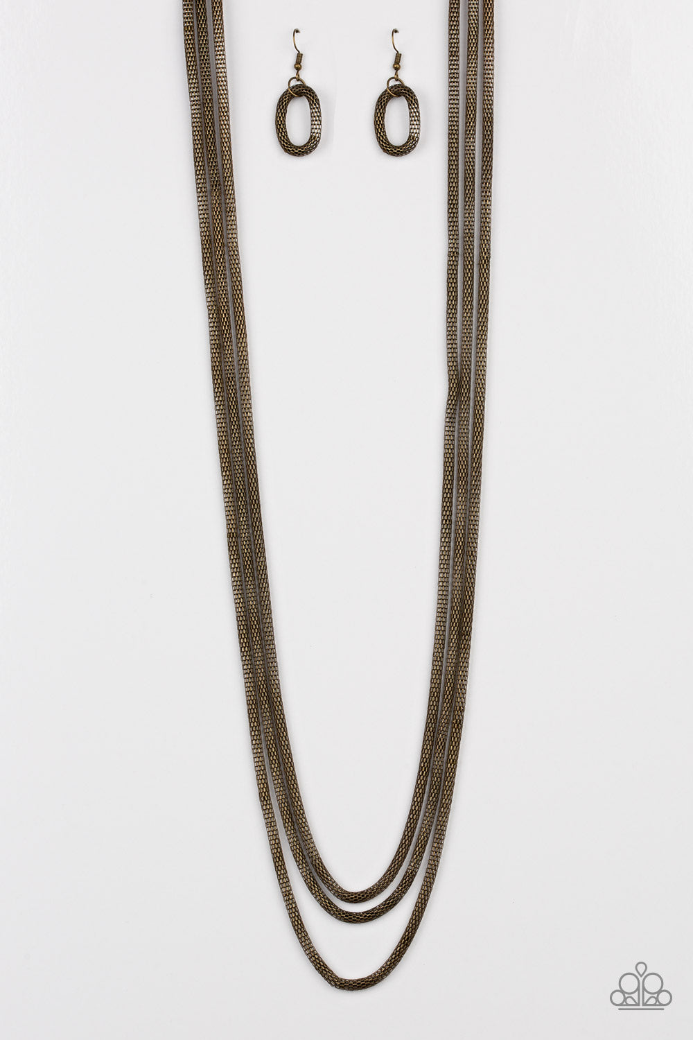 Three strands of rounded mesh chain drape across the chest, creating unstoppable shimmer. Features an adjustable clasp closure.